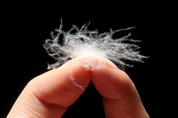 羽絨有一個三維結構,所以它可以“擴展”。在相同的重量下,絨毛中的每一簇細絲都能比其他任何材料容納更多的空氣。每克羽絨大約有70000根細絲,這些細絲相互重疊、纏繞形成一層保護層,通過保持空氣在適當的位置來保持溫暖和絕緣。