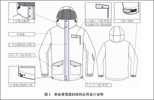 并且在最后作者還根據調查結果,總結出受訪者喜歡的最合理滑雪服款式結構圖。此款單板滑雪服是以功能應用為主的設計,不增加任何裝飾性結構,目的是減輕滑雪服自重,同時滿足滑雪中一切使用需求,兼具防風散熱與保暖性,有保證穿脫便捷性。