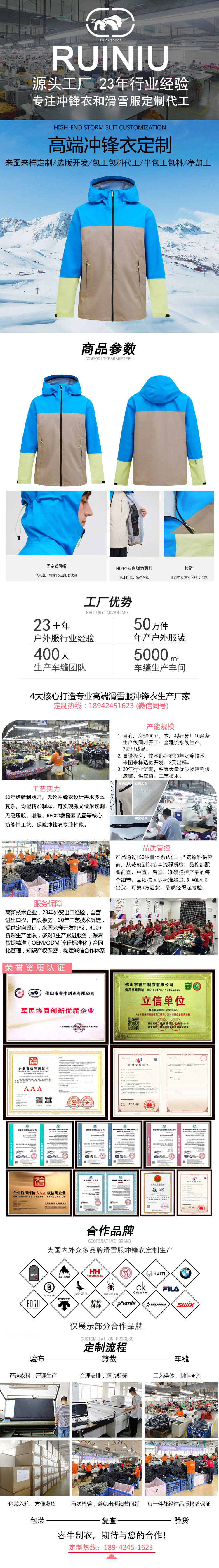 優(yōu)質面料:專業(yè)高端沖鋒衣定制23年沉淀優(yōu)質供應商資源,可根據(jù)客戶需求精選優(yōu)質面料。