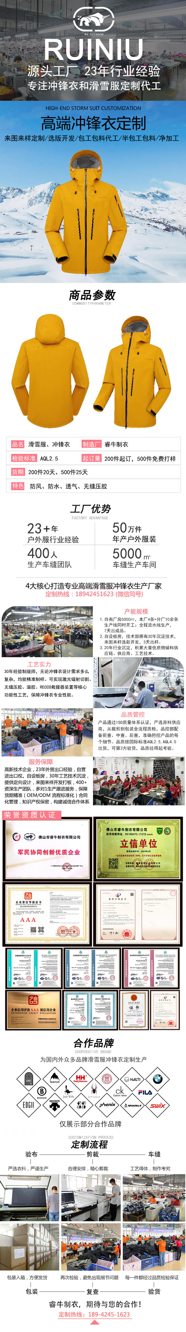 3. 支持特殊配件定制,滿足品牌差異化需求,為服裝品牌商提供高品質、高性價比的沖鋒衣代工解決方案。